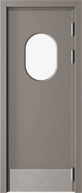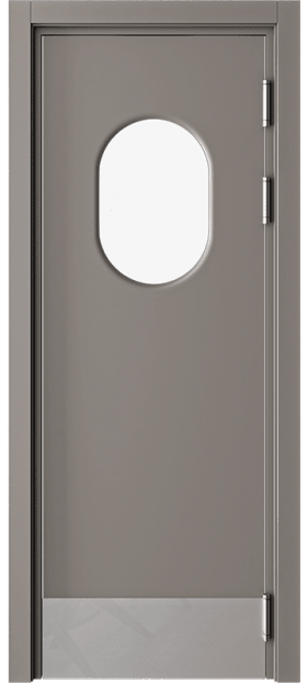 Барные двери актуальны в помещениях с повышенной проходимостью для более удобного доступа персонала к техническим комнатам, например с бара в зону кухни. Часто бывает необходимым, для обзора соседнего помещения, чтобы дверь была остекленная и стилистически оформлена. Стекло толщиной 4 мм круглой, овальной или квадратной формы, на выбор: сатинат светлый, бронзовый, графит или прозрачное стекло. Устанавливается на двери толщиной 40 мм в покрытии Эмаль (любой цвет по каталогу RAL Classic K7) и толщиной 35 мм в ПВХ-покрытиях.